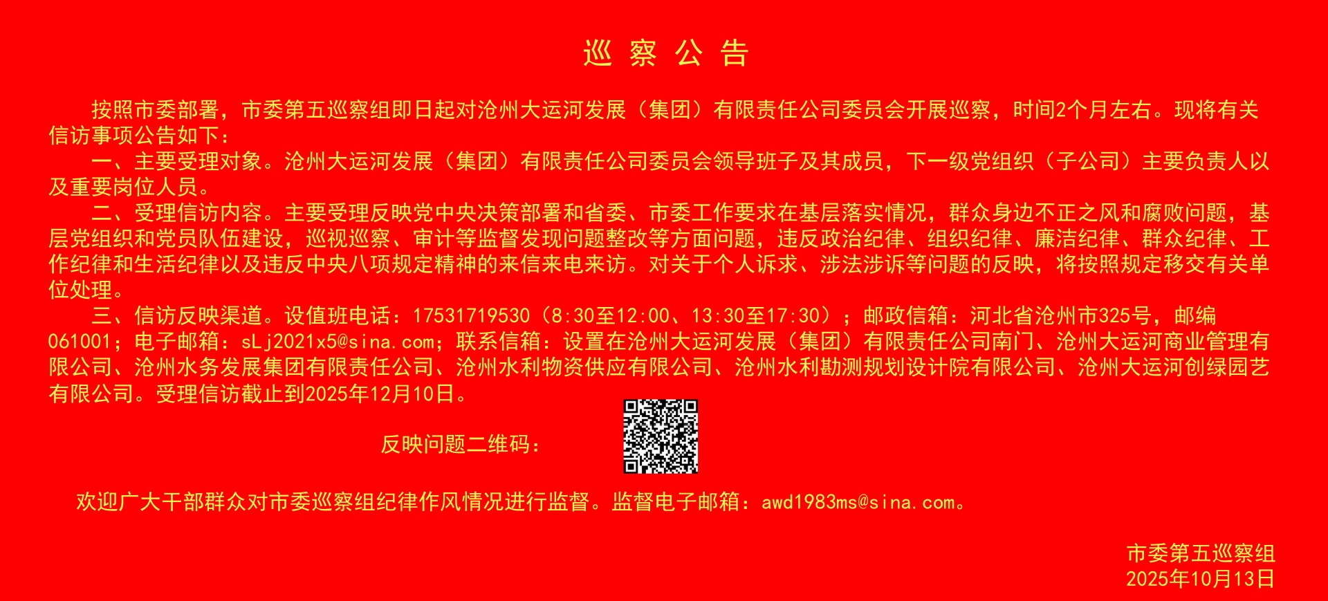 ? 關(guān)于滄州大運(yùn)河發(fā)展(集團(tuán))有限責(zé)任公司主入口大門及外網(wǎng)提升工程的中標(biāo)公示