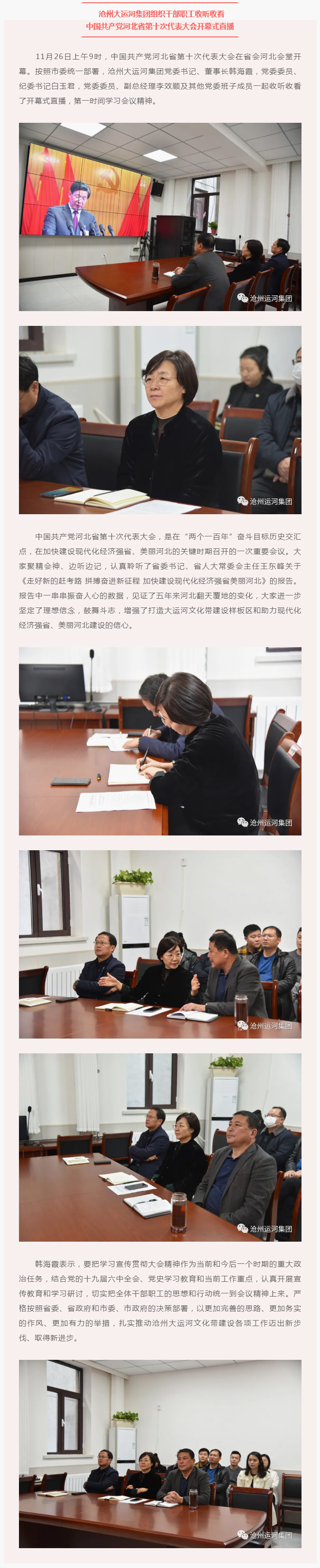 滄州大運(yùn)河集團(tuán)組織干部職工收聽收看中國共產(chǎn)黨河北省第十次代表大會(huì)開幕式直播