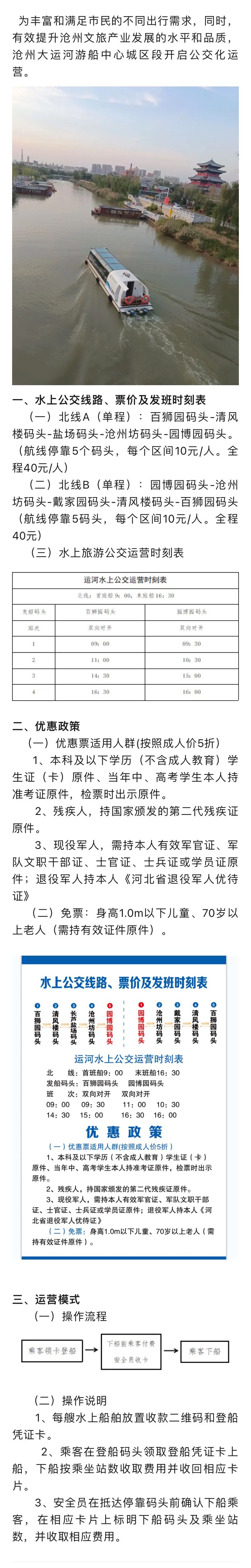 滄州大運河游船中心城區(qū)段水上公交正式開通