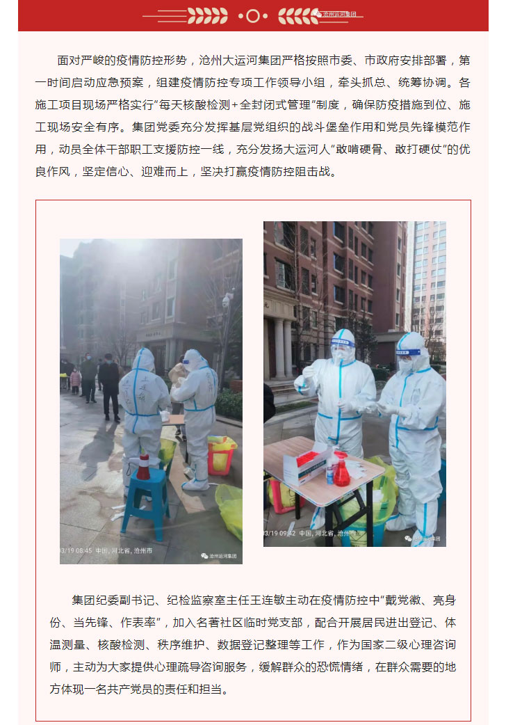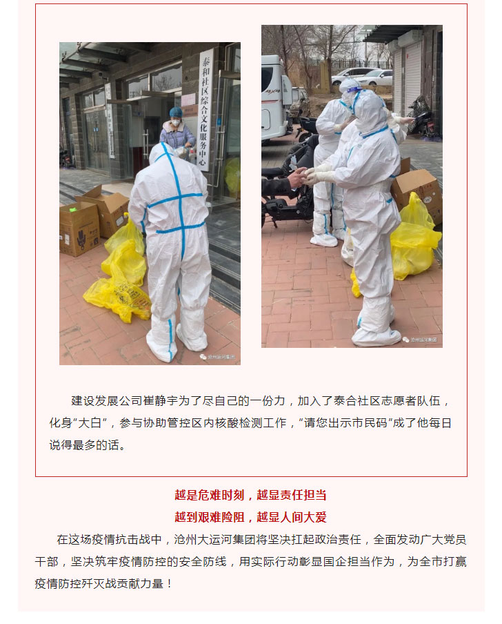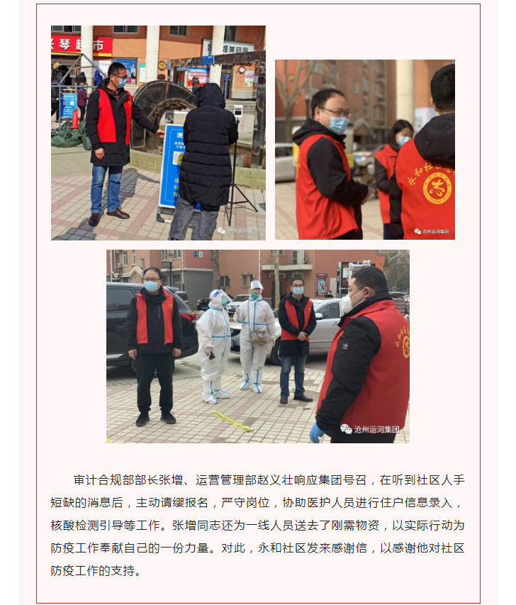 同心戰(zhàn)疫顯擔當,筑牢疫情“防護墻”!滄州大運河集團志愿者在行動